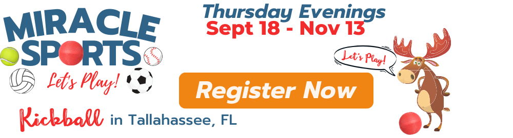 Join us for kickball this fall out at Miracle Field at Messer Park in Tallahassee. We play Thursday evenings through November 13, 2025. We have a fun filled season with events including a Costume Party on October 30 and the Seminole Showdown on November 13! Everyone is welcome to play. No prior experience is necessary. All Ages & All Abilities! This is a brand-new season, so everyone needs to register! Date(s): Thursday evenings through November 13, 2025 Location: Miracle Field at Messer Park (Field #3 1158-1172 Dupree Street, Tallahassee, FL 32304)